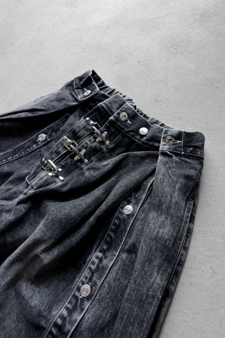 Silver Buckle Double Tuck Denim Pants / Black