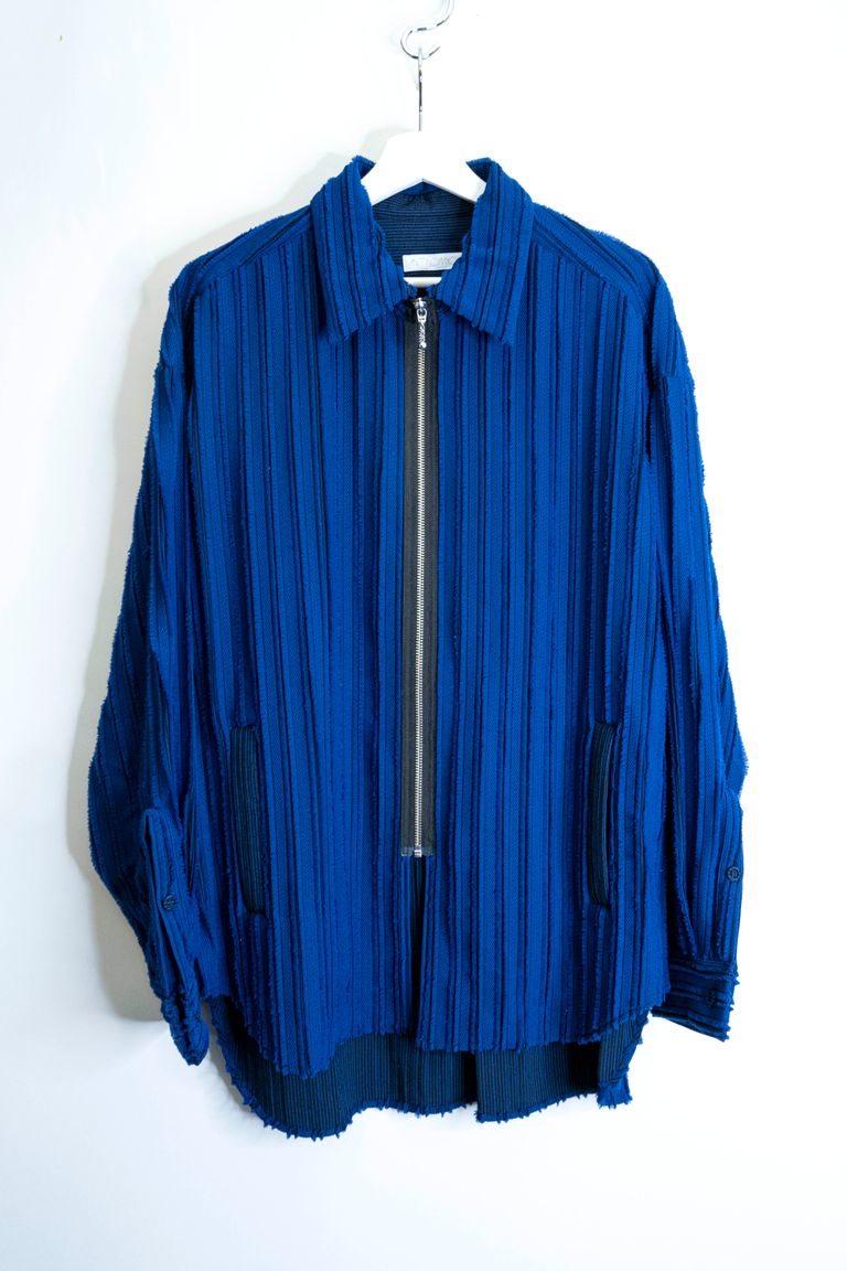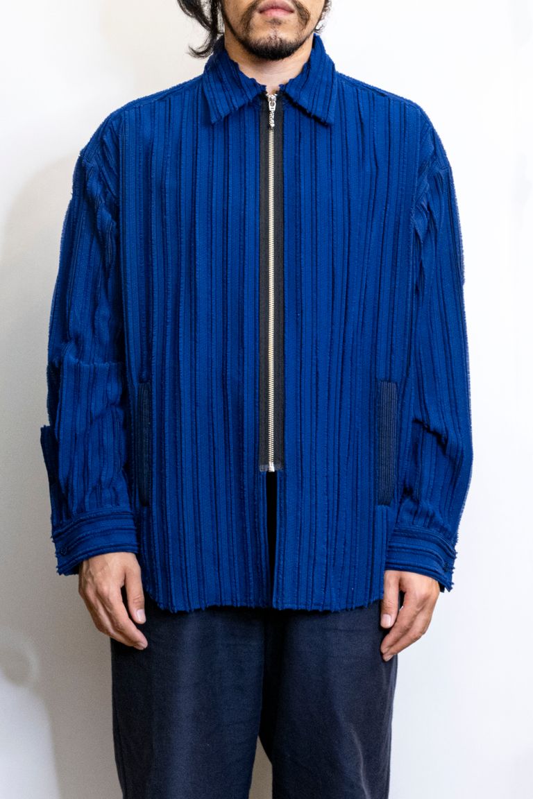 Quilted Striped Jacquard Shirt Blouson / 刺し子ストライプジャカードシャツブルゾン - ROYAL BLUE
