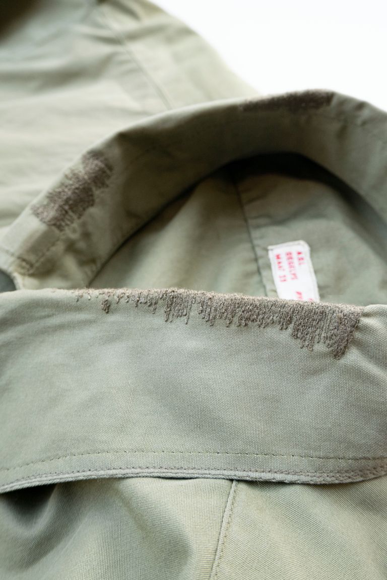 在庫なし No Attention Remake line Belgian Army Remake shirts / ベルギー軍リメイクシャツ ¥11,000 税込 100 ポイント還元 この商品は 送料無料 でお届けします 注文 サイズ(採寸)情報 質問する お気に入り コーディネートリクエスト不可 お電話でもご注文いただけます!お電話の際は 商品番号:805 をお知らせください。 電話をかける 050-6874-0523 サイズ 肩幅 身幅 袖丈 着丈 One Size 47 57 62 81 単位:センチ 商品説明 1967年製ベルギー軍のシャツをリメイク。ポプリン生地の滑らかさが特徴的で肌触りも抜群。大き目のサイズ感だったのでシルエットの調整を施し、エポレットの位置を変更してズラすことで、ベスト等と合わせた時にアクセントになるデザインにしております。特有の肩のごわつきも解消され、少し大きめのサイズ感でも着用できるように。もともとあった補修跡に加えて、各所に更に叩きのリペア跡をわざと入れております。素材コットン100%One Size肩幅47cm/身幅57cm/袖丈62cm/着丈81cm No Attentionの商品について No Attentionの商品は、一点物の古着のリメイクアイテムです。リペア跡、ダメージ等の加工を加えたアイテムもございます。またブランドの信念上、元となった服のタグを切除してあります。ご了承くださいませ。 詳細情報 カラー KHAKI 素材 コットン100% ブランド No Attention Remake line 品番 NA-413 カテゴリ トップス > シャツ・ブラウス 性別 ユニセックス 着用モデル情報 身長175cm 返品 不可 ラッピング 不可 配送方法 佐川急便(送料について) お支払い方法 本商品でご利用可能な決済方法は下記となります。各お支払い方法についての詳細はショッピングガイドをご覧ください クレジットカード払い セキュリティコードとはクレジットカード裏面のサイン欄上部に記載されている数字の一番右の3桁の数字です。アメリカン・エキスプレス・カード提携のクレジットカードの場合、セキュリティコードはクレジットカード表面に記載されている4桁の数字となります。 楽天ペイ いつもの楽天IDとパスワードを使ってスムーズなお支払いが可能です。 楽天ポイントが貯まる・使える!「簡単」「あんしん」「お得」な楽天ペイをご利用ください。 ※楽天ポイントが貯まるのは楽天カード・楽天ポイント・楽天キャッシュでのお支払いに限ります。 銀行振込 代金引換 Retikle店頭での決済 Retikle実店舗での店頭にてお支払いされる方は、こちらを選択してくださいませ。 現金、クレジットカード、各種QRコードでの決済が可能です。 商品は店頭にてお受け取りが可能です。 あと払い (ペイディ) 事前登録不要、クレジットカード登録不要。 メールアドレスと携帯電話番号だけで、今すぐ購入可能。 お支払いは翌月27日までに、コンビニ払い・銀行振込・口座振替で。 1か月に何度購入しても、お支払いは翌月まとめて1回でOK。 さらに、ペイディアプリから本人確認をすると、分割手数料無料*の3回あと払い**、ご利用可能額の確認、使い過ぎを防止する予算設定など、便利な機能がご利用いただけます。 *口座振替・銀行振込のみ無料 **1回のご利用金額が3,000円以上の場合のみ利用可能 サイズ(採寸)情報 サイズ 肩幅 身幅 袖丈 着丈 One Size 47 57 62 81 単位:センチ このアイテムをシェア この商品について質問する
